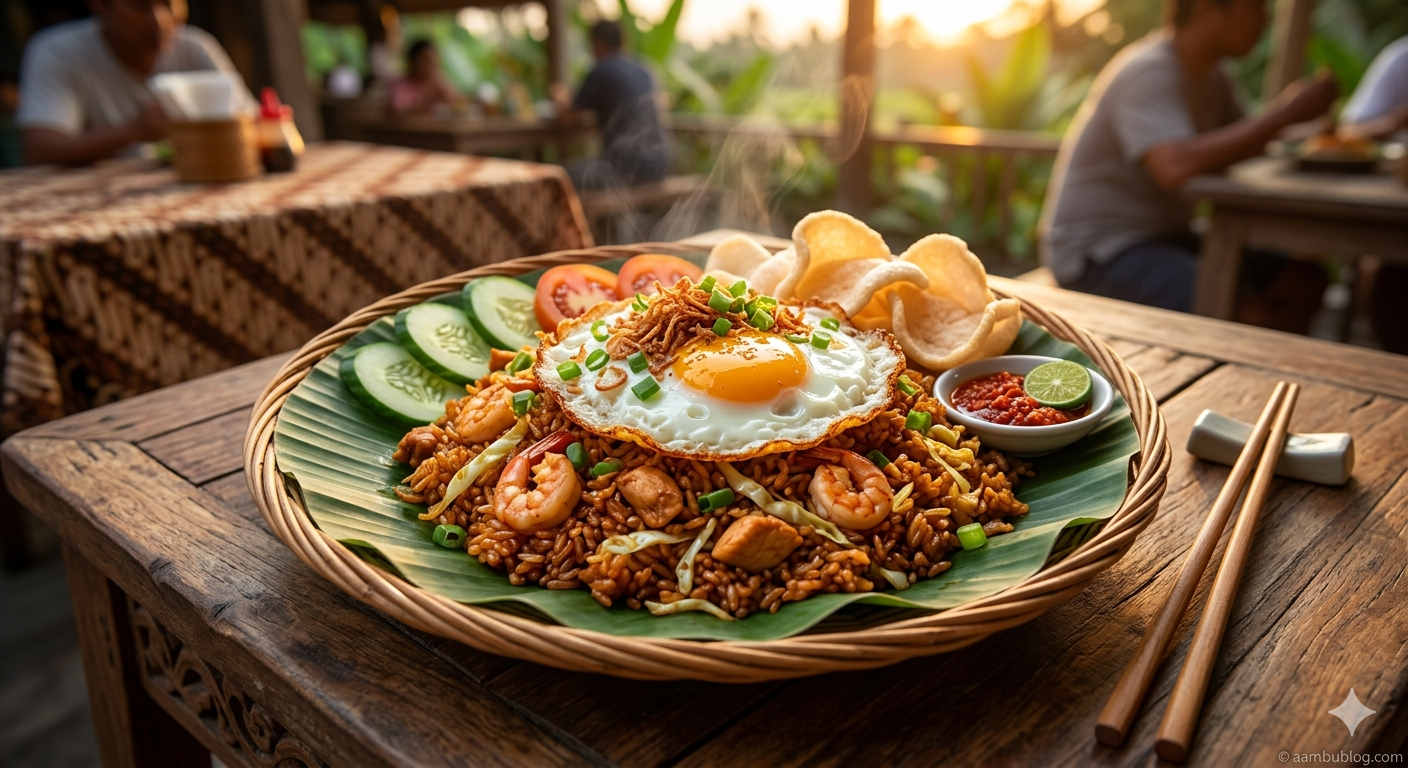 Nasi Goreng is proof that fried rice can be a spectacular main event, not just a side dish. The sweet, savory, and spicy flavors combined with the rich yolk of a fried egg make this Indonesian classic an absolute must-try. We hope this authentic street food recipe brings a taste of Bali to your kitchen, straight from AAMBU RASOEE!