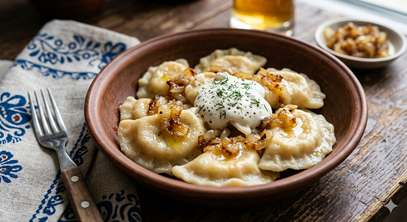Pierogi are Polish dumplings that define comfort food. The most traditional version is Pierogi Ruskie, filled with a savory mix of mashed potatoes, cheese, and caramelized onions. They are soft like pasta but can be pan-fried in butter to give them a golden, crispy shell.