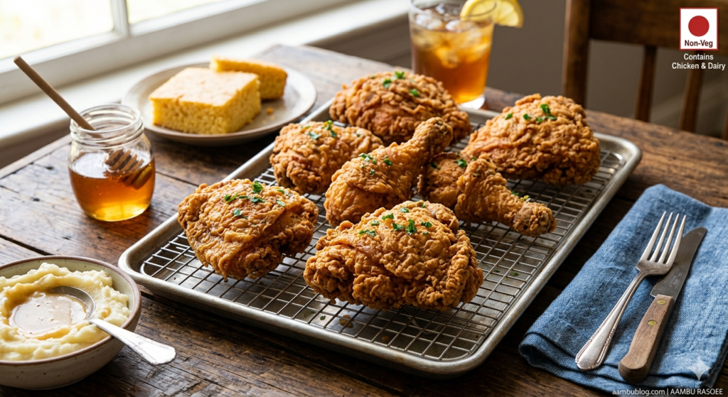 🔴 Non-Veg / Contains Chicken & Dairy | 🥘 Main Course / American Cuisine Crispy, golden on the outside, and
