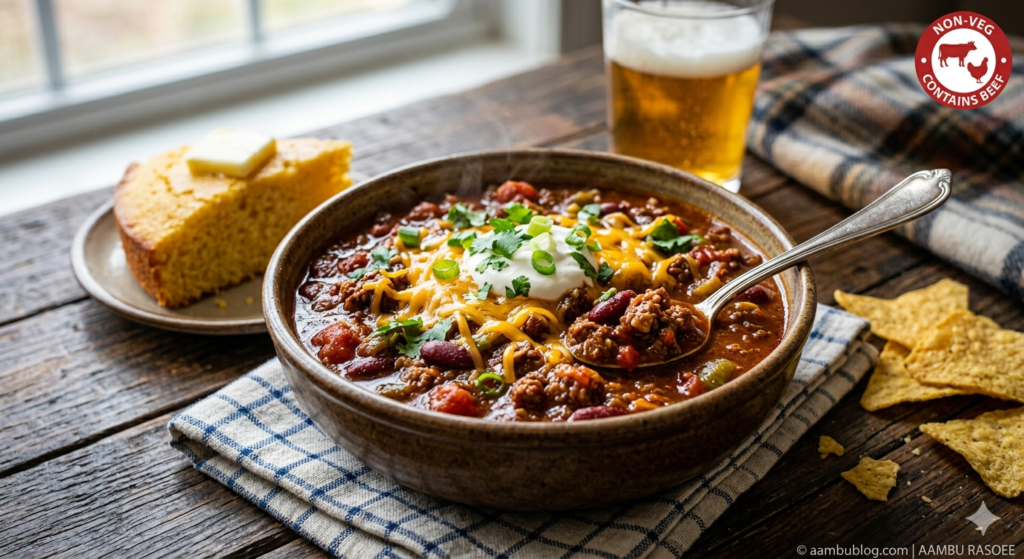 🔴 Non-Veg / Contains Beef | 🥘 Main Course / American (Tex-Mex) Cuisine A true American Chili (Chili con Carne)