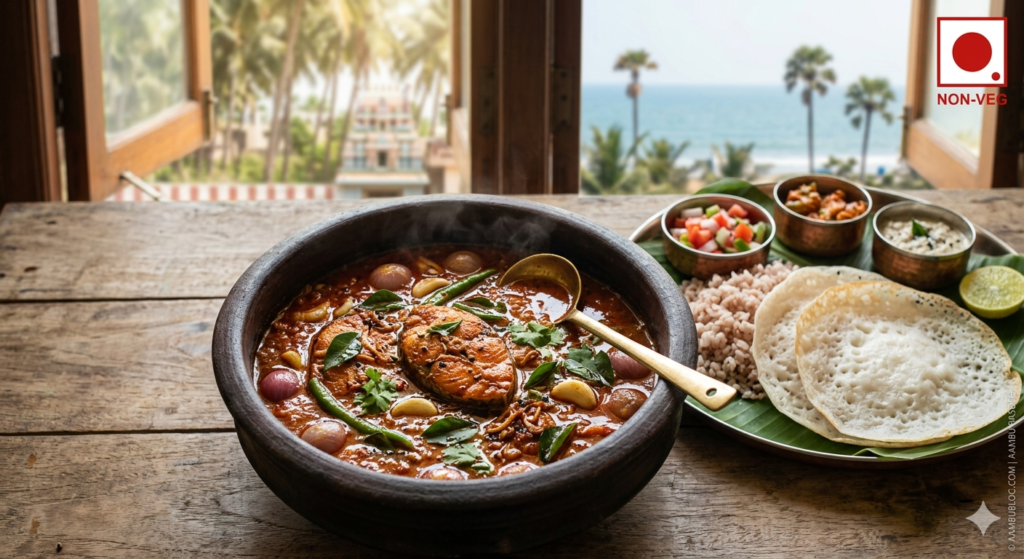 🔴 Non-Veg / Seafood | 🥘 Main Course (Perfect with Hot Rice or Idli) Meen Kuzhambu translates to ‘Fish Curry’