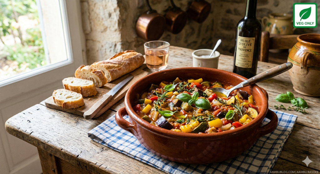 🟢 Veg Only | 🥘 Main Course / Side Dish / French Cuisine Ratatouille is a classic stewed vegetable dish