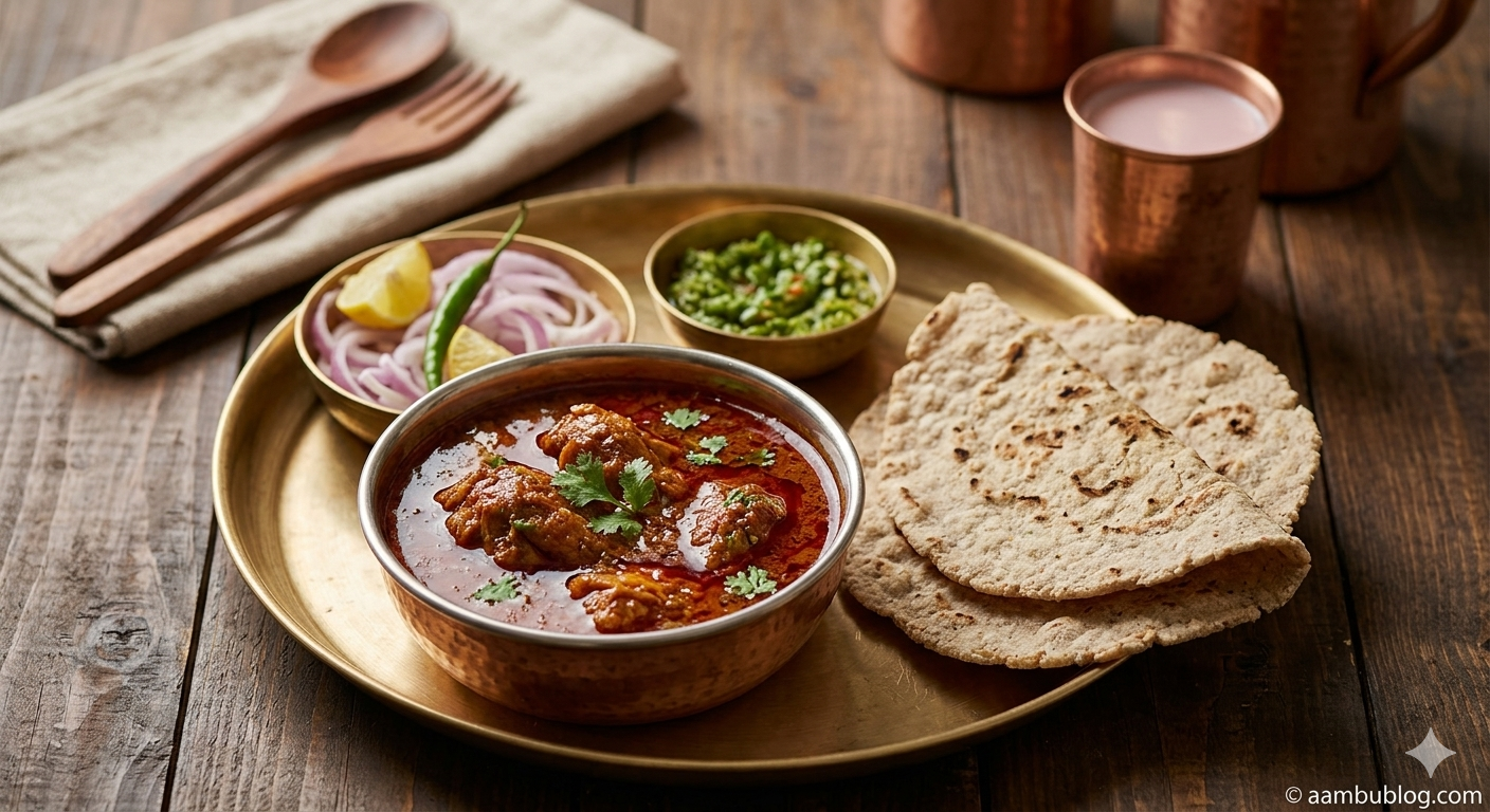 Maharashtrian Zanzanit Chicken Rassa is more than just a recipe; it is an experience of bold flavor, deep history, and comfort. The rich, thick peanut and coconut gravy clinging to the tender chicken makes it an unforgettable culinary journey. Serve it piping hot with Jowar Bhakri, a side of raw onions, and a wedge of lemon. Enjoy this finger-licking masterpiece from the traditional kitchens of AAMBU RASOEE!
